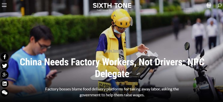 China Needs Factory Workers, Not Drivers: National People’s Congress (NPC) Delegate by WU Peiyue Sixth Tone (9 March 2022) Link to the interview : https://www.sixthtone.com/news/1009848/china-needs-factory-workers%2C-not-drivers-npc-delegate